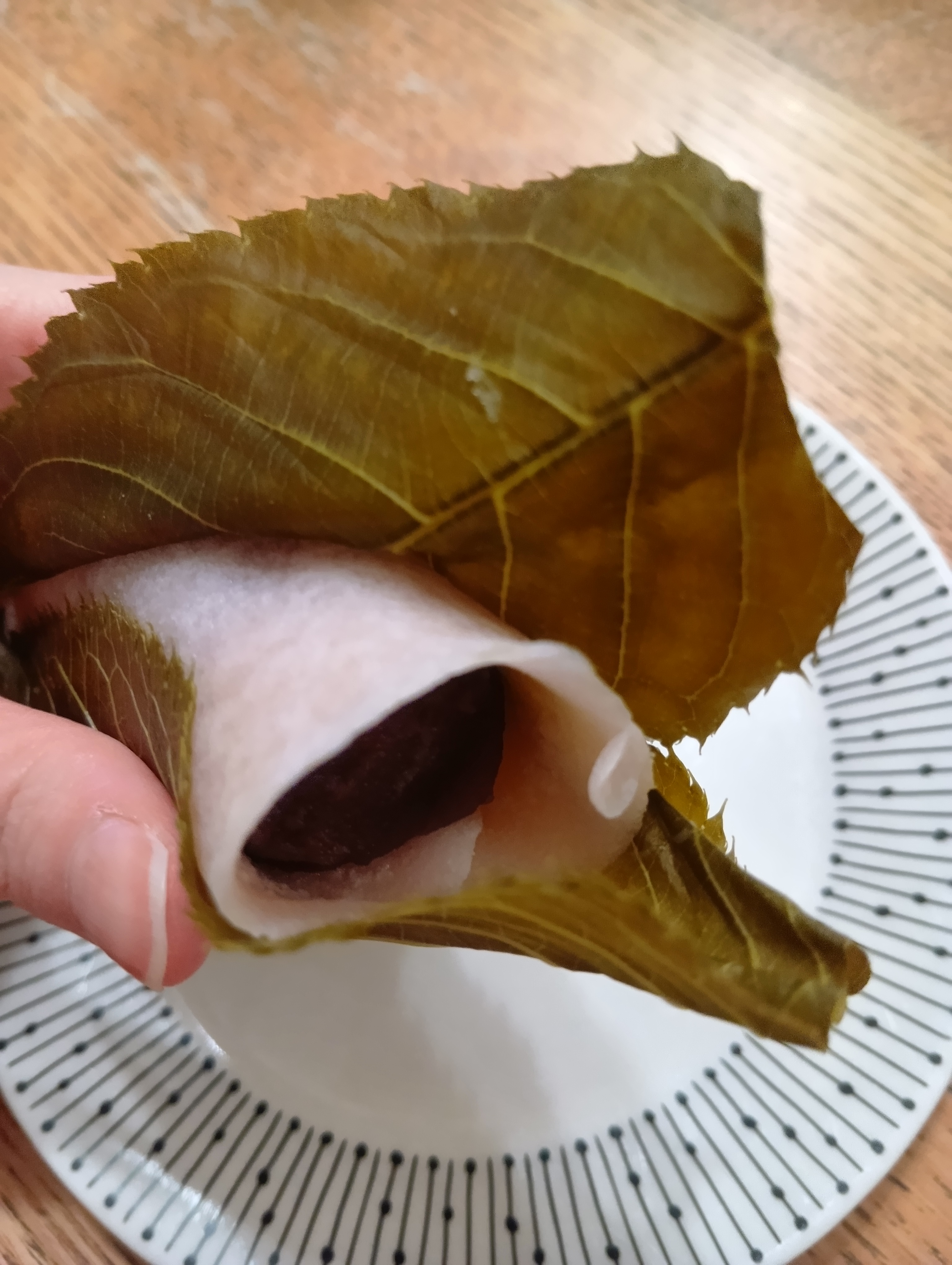 帰宅後さくらもち食べました。写真上手く撮れない…。